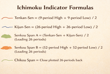 The Ichimoku Indicator consists of five main components: